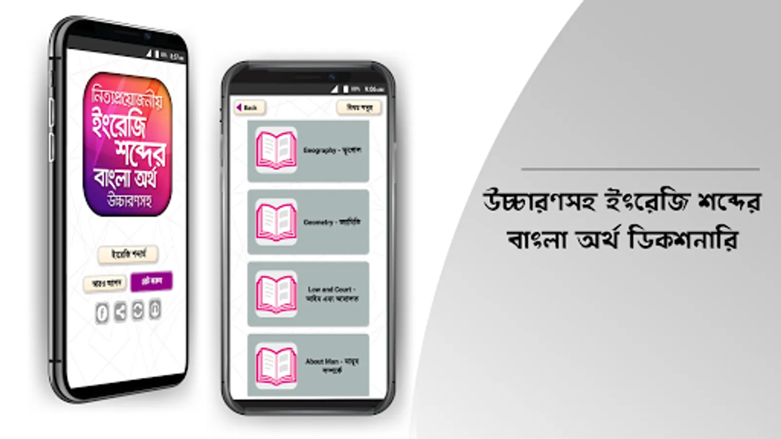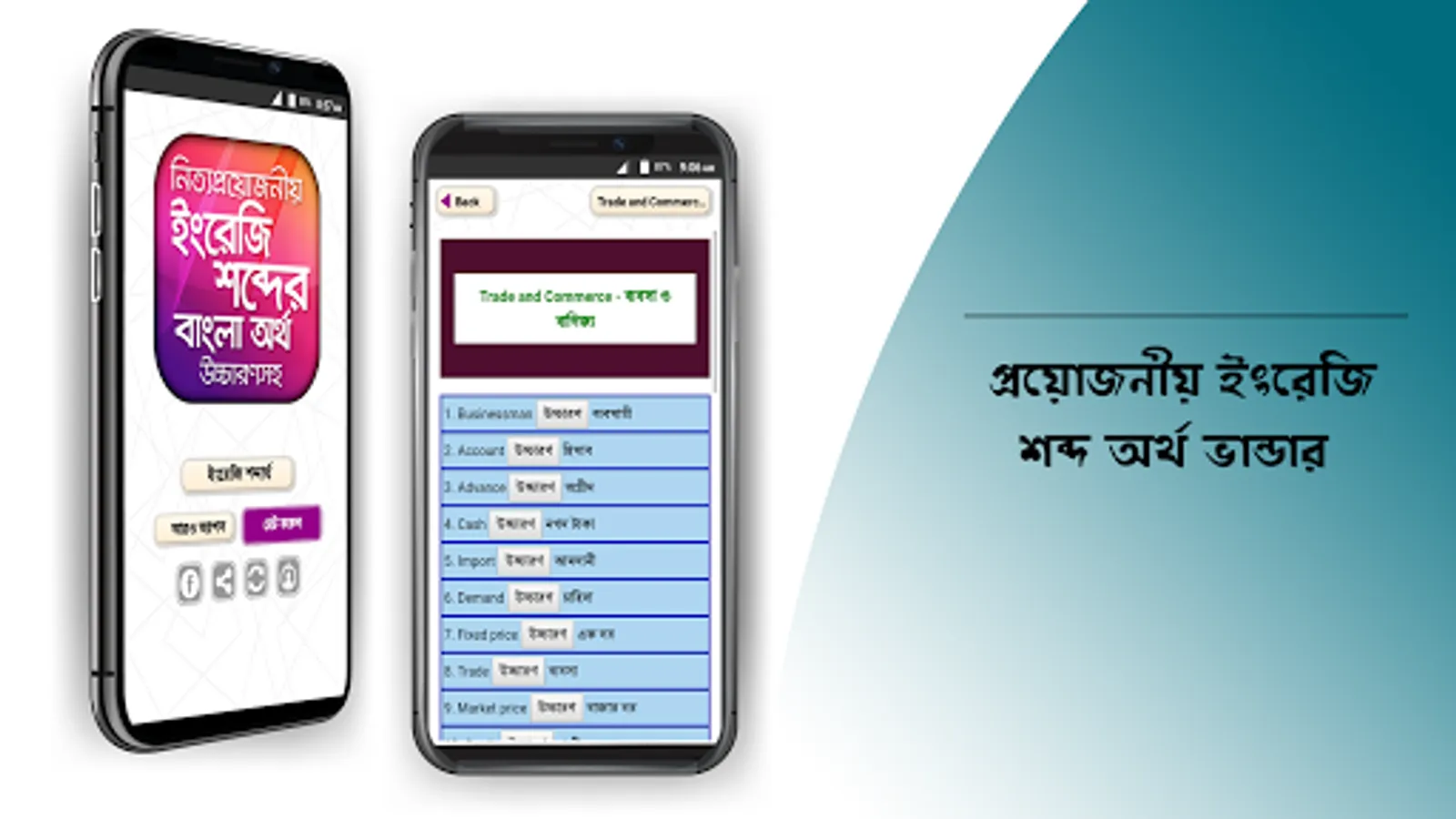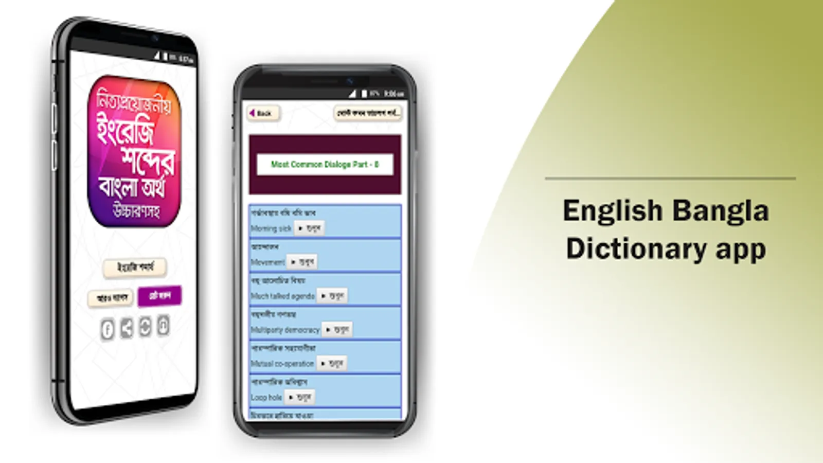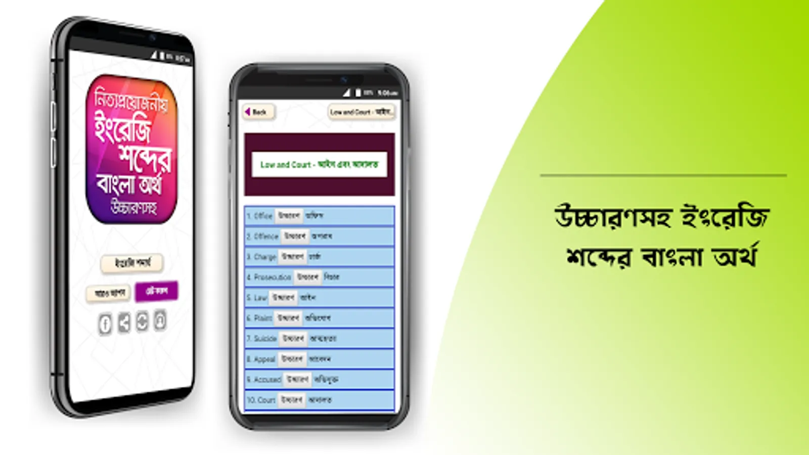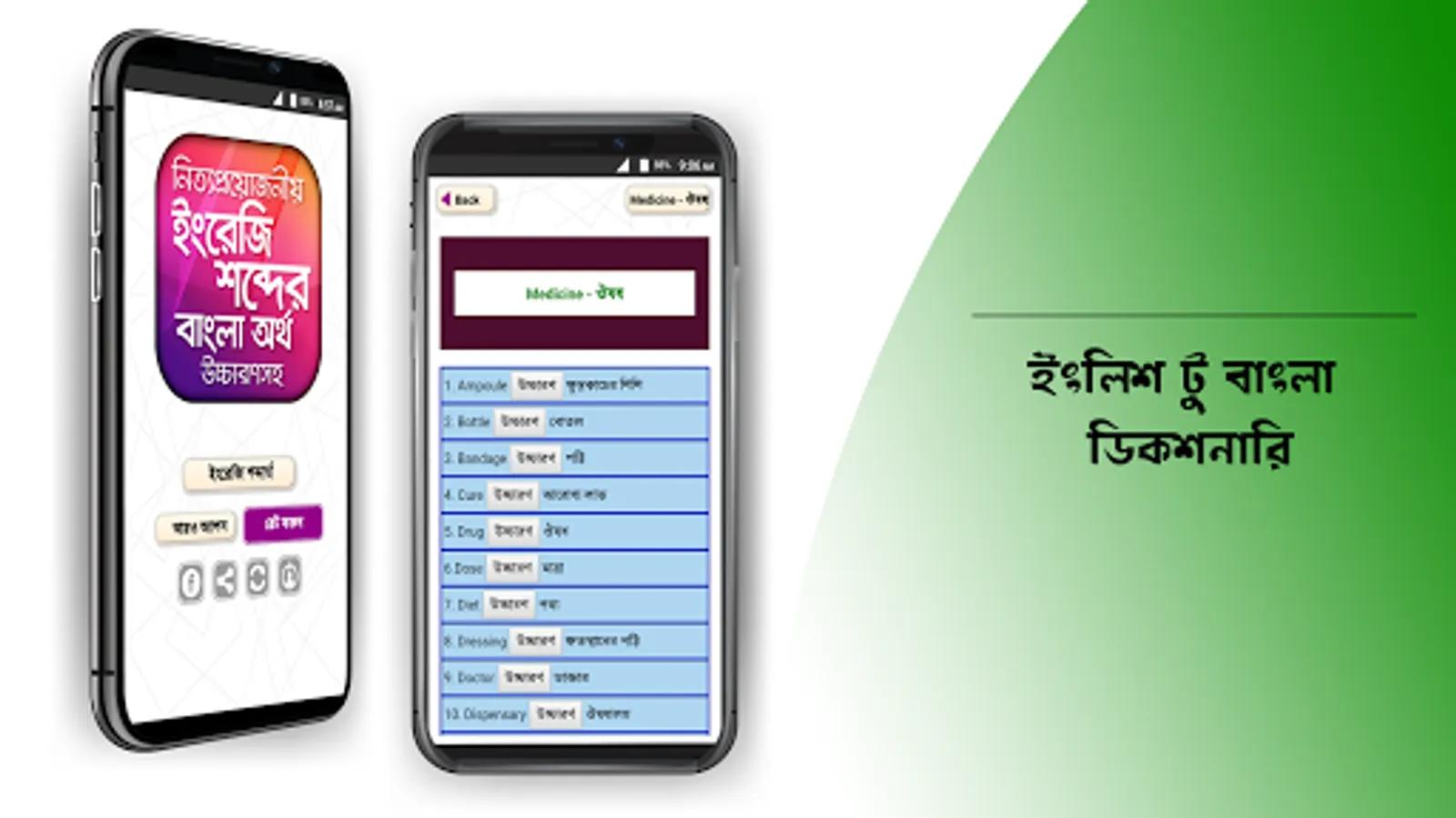 উচ্চারণসহ ইংরেজি শব্দের বাংলা অর্থ অ্যাপটি ব্যবহার করে আপনি সহজেই যেকোন ইংরেজি শব্দের বাংলা অর্থ জানতে পারবেন আর আপনার ইংরেজি ভোকাবুলারি তথা শব্দ ভাণ্ডার বাড়াতে বিশেষ সহায়তা করবে।