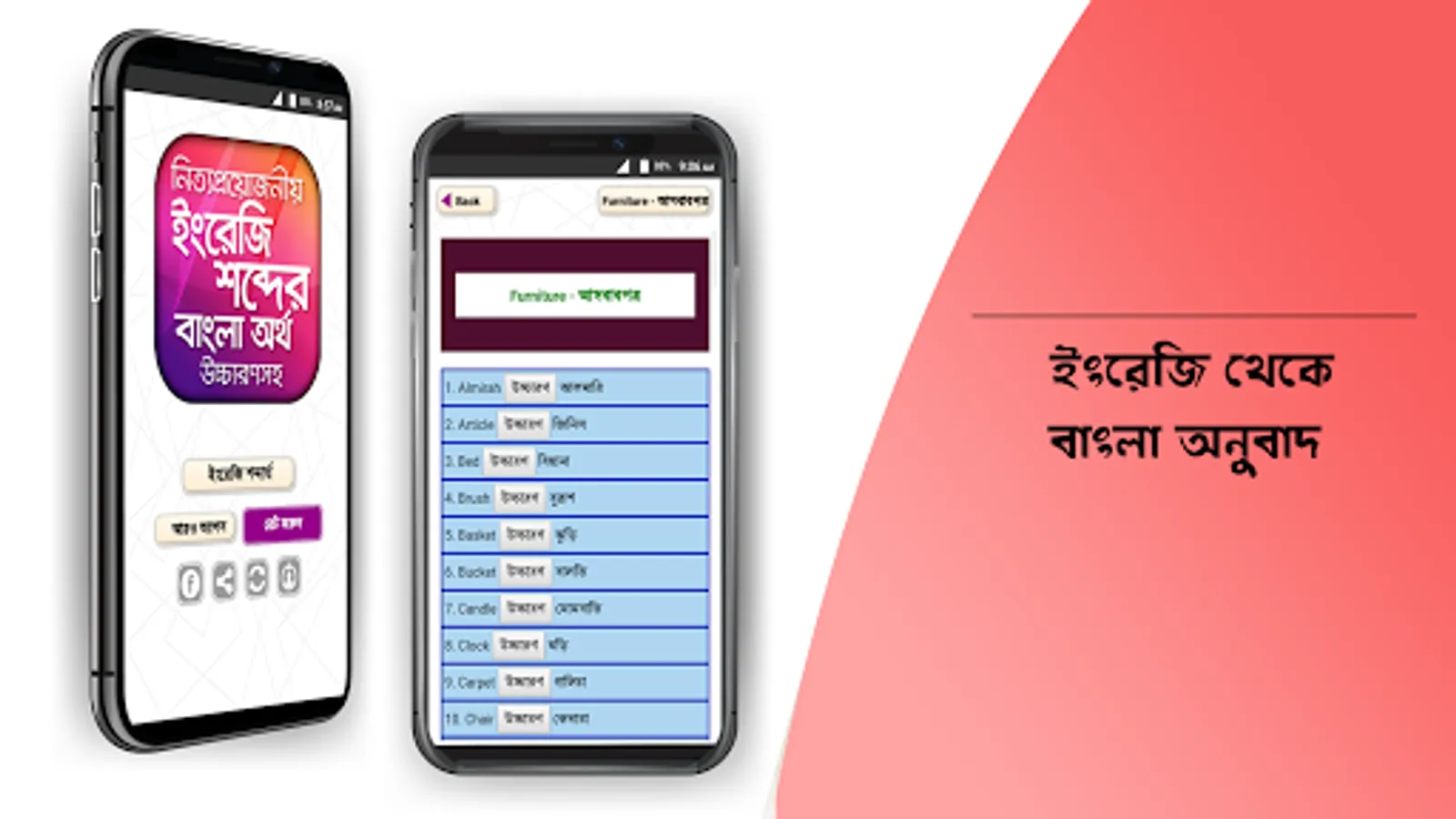 who wants to learn english word in Bangla then he see this application for word book english to bangla is a offline english to bangla vocabulary for them This type of offline english to bangla dictionary application . It also helps to translate any word into english to bangla or bangla to english. In this application we organize many words with pronunciation and bangla meaning.