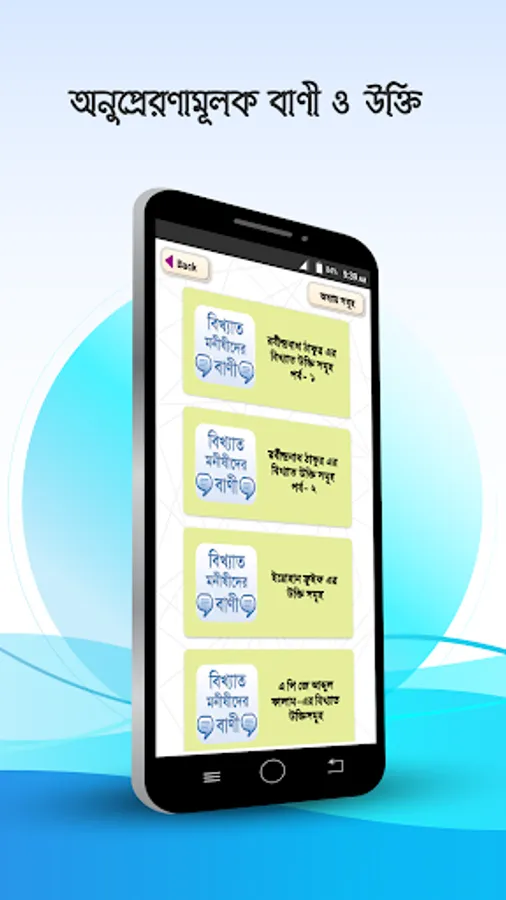 বা উক্তি যারা খুঁজছেন তাদের জন্য এই অ্যাপ। অ্যাপটিতে পাবেন মহান সব মনিষীদের বানী, বাণী কথা। পাবেন ভালো লাগার মত কিছু ইসলামিক উক্তি, কাছের বন্ধুদের নিয়ে বন্ধুত্বের উক্তি এবং জীবন বদলে দেওয়া ইসলামিক বাণী। বিখ্যাত ব্যক্তিদের বানী সমূহ পর্ব আকারে আলাদা আলাদা করে সাজানো হয়েছে যেন পাঠকদের পড়তে সুবিধা হয়। অ্যাপটির আরেকটি সুবিধা হচ্ছে, এটি অফলাইনে কাজ করে। আপনার প্রয়োজনে এই অ্যাপটি সংগ্রহে রাখতে পারেন।