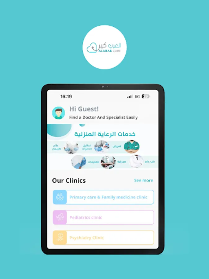 Al Arab Care is a electronic health platform licensed by the Ministry of Health. We serve you and your family throughout the week through our home health services and remote medical consultations. Our goal is to provide high quality services with ease and flexibility while you are in your place.
