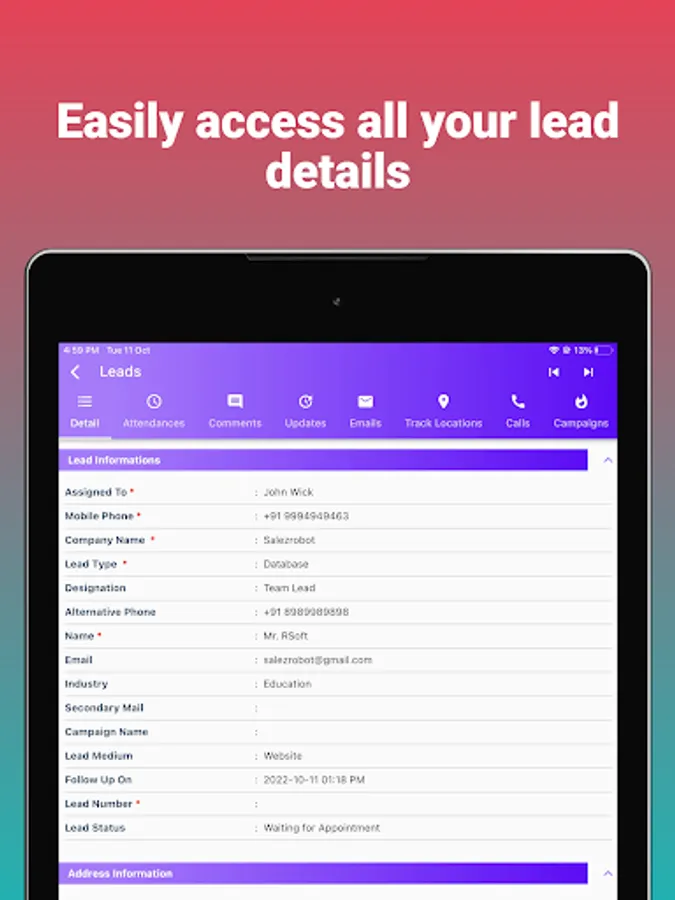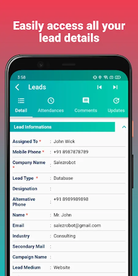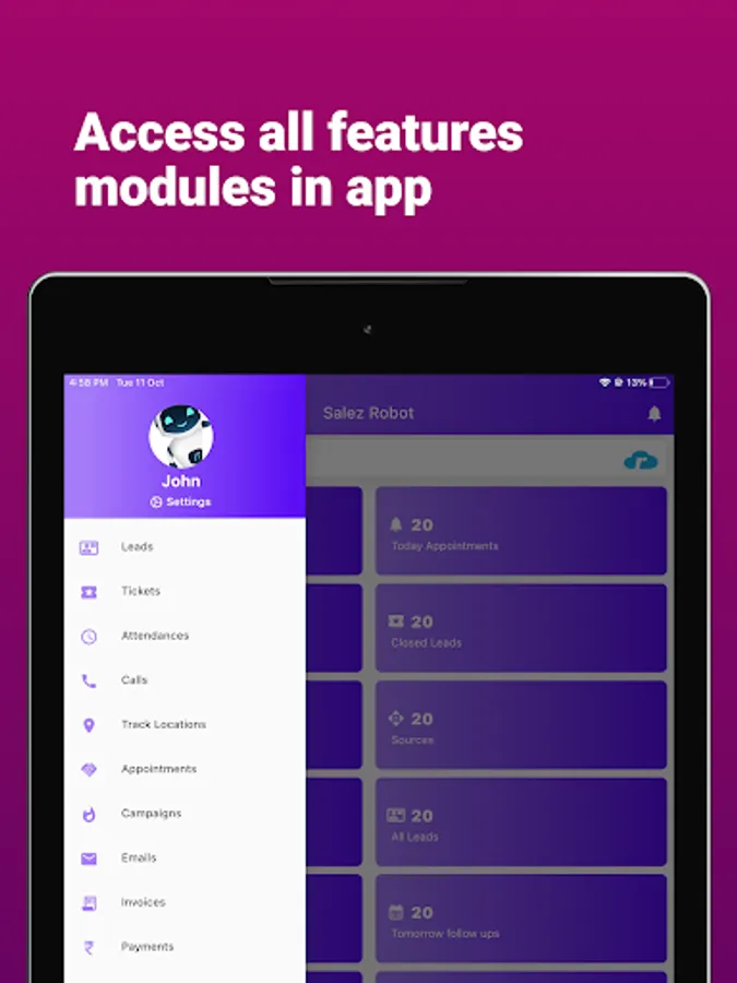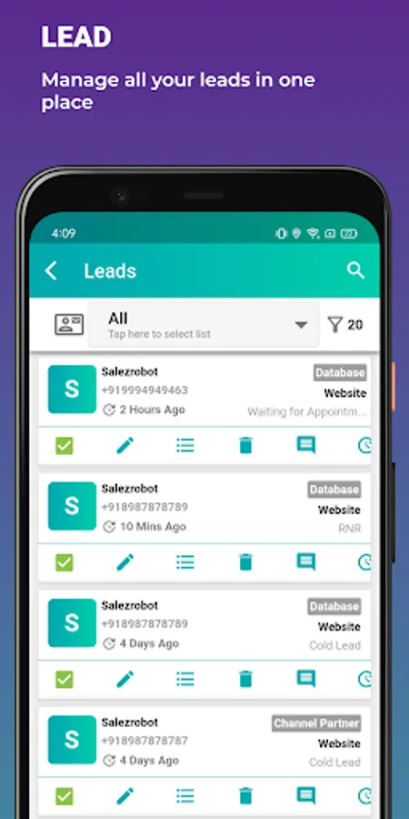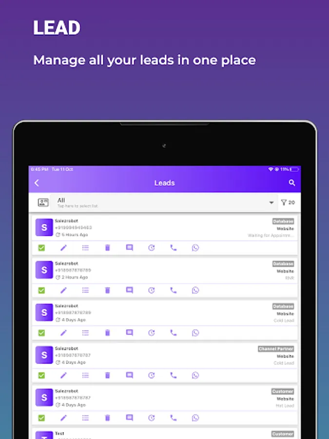 Salez Robot App will be helpful to access and update customers data from mobile like sales order pipeline, Leads,Customers Support, vendors, organisation data on the fly, right from the phone.