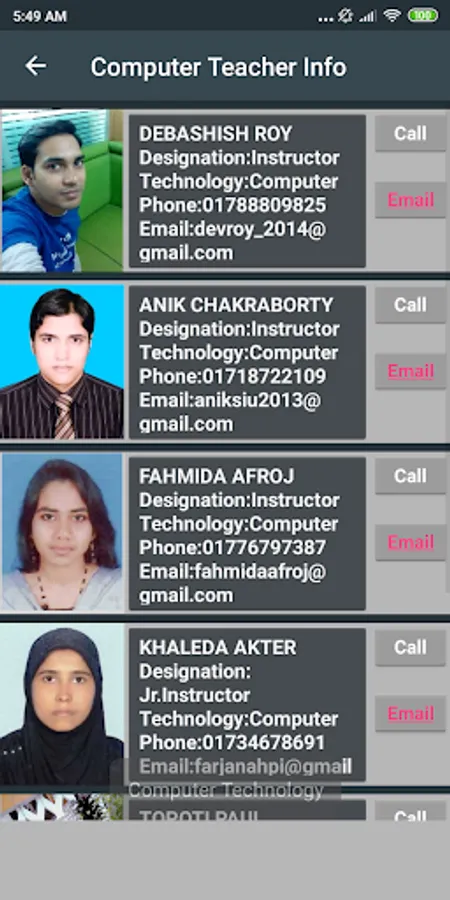 In this app, students are easily able to communicate with teachers. Here included all information about honorable teachers. Students can instantly call and mail inner this. Every teachers information are arrangers beautifully with call and mail buttons. Students easily contact their classmate within from this list. Here listed all Departments with details info. Session 2010/11/12 & 2014 of all students and their name listed fairly. This app decorated with full of educational feature and backgrounds. And here students can able to find about recent job circular. Institute's authority help end of all semester for Internship attachment purpose. Students can able to get recent update and notice by this app.