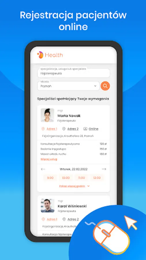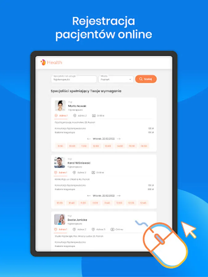 The program for operating the physiotherapy office is constantly updated to the changing standards and guidelines, so you can be sure that you fill out electronic medical documentation in accordance with the law. With our help, you will efficiently upload the certificate and go through the authentication process with the P1 platform.