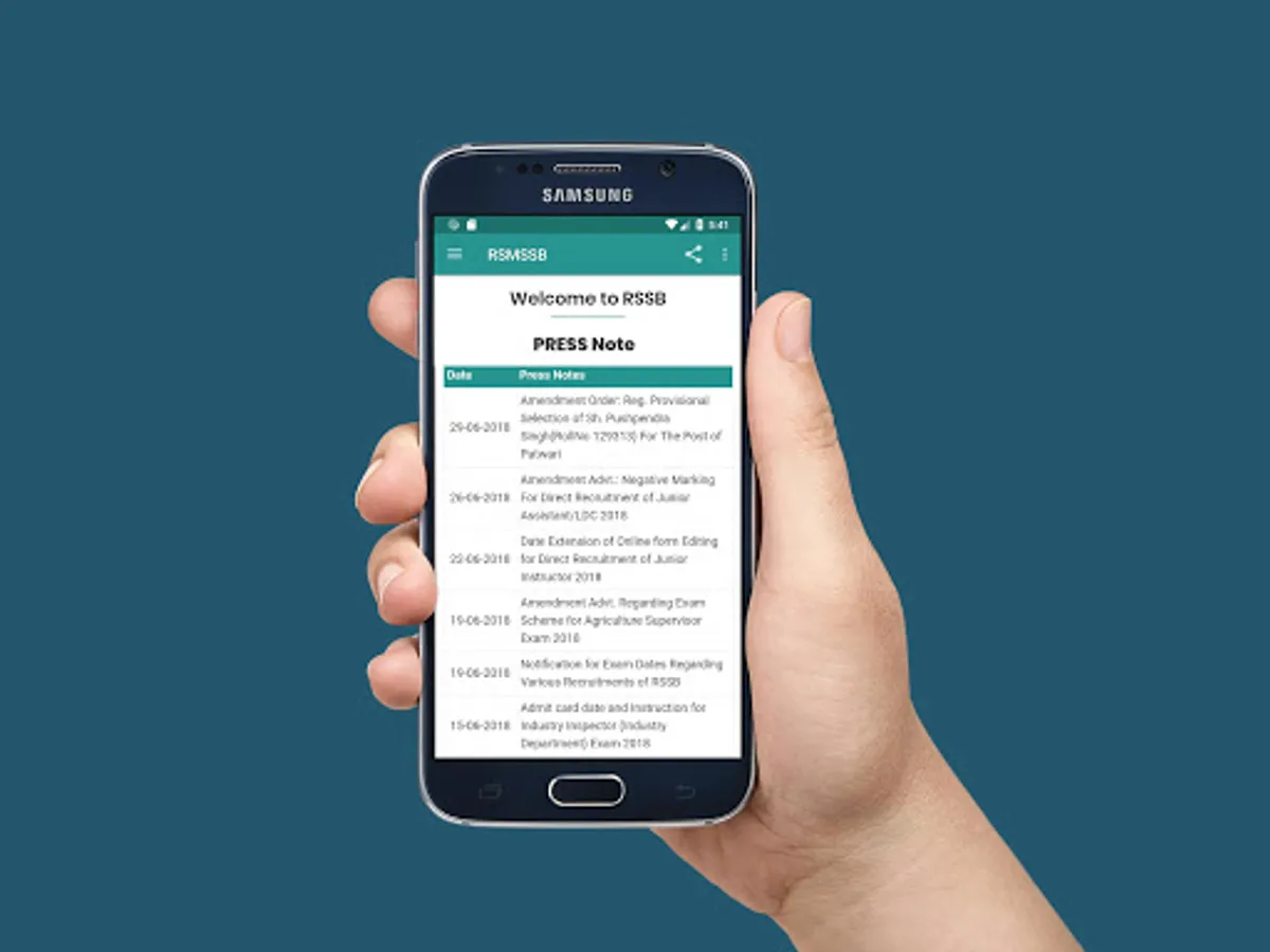 The RSMSSB android app is focused to provide latest information from RSSB to students. Top features of the app: