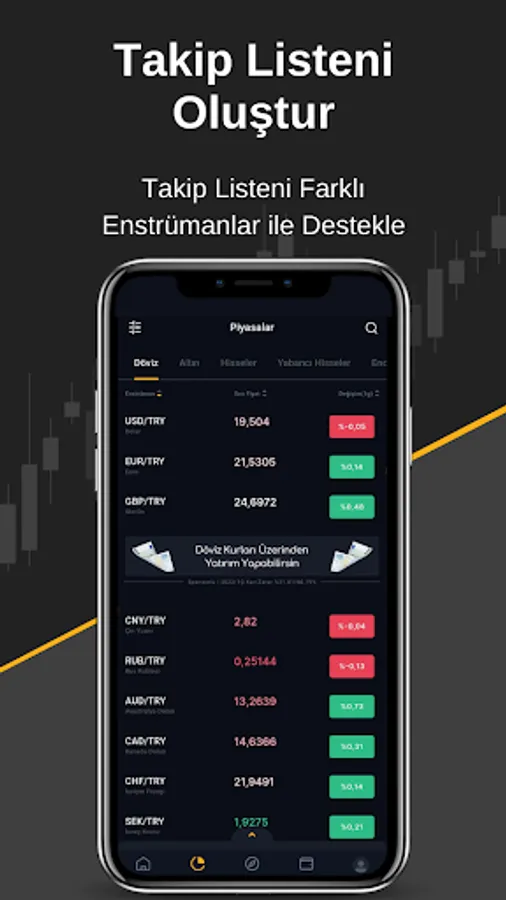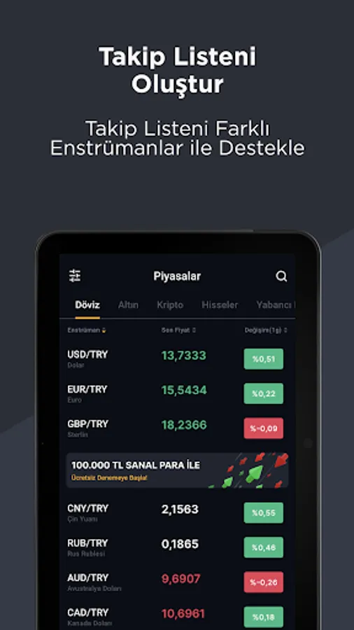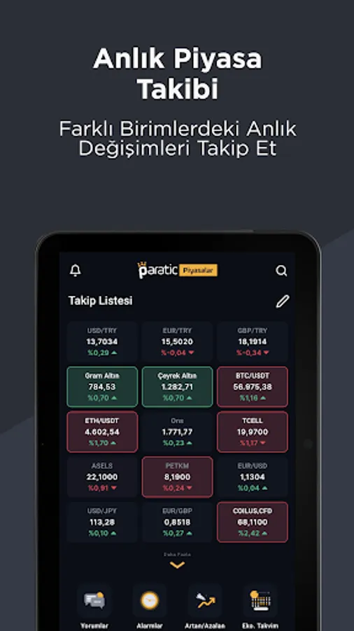 Gold prices, exchange rates, indices, stock markets, Turkish and foreign stocks, parities, commodities… All investment instruments; at Paratic Markets with a simple design, easy use and customizable screens.