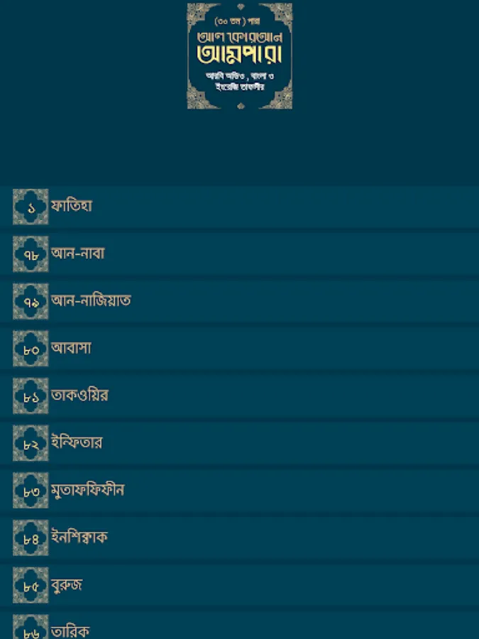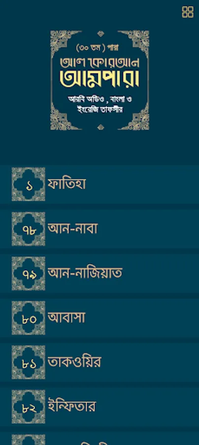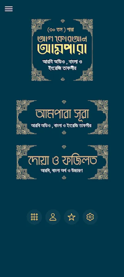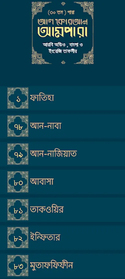 আসসালামু আলাইকুম প্রিয় মুসলিম ভাই বোন ও বন্ধুরা।আমপারা বাংলা একটি শিক্ষামূলক অ্যাপ। সকল মুমিন মুসলমানের জন্য তর্জমা তফসিল সহ সূরা, দোয়া শিক্ষার মাধ্যম হিসেবে আমার অ্যাপটি তৈরী করেছ। আপনারা খুব সহজে আরবি বাংলা সহ আরবি সূরা শুনতে ও পড়তে পারবেন। এখানে রয়েছে ৩৮টি সূরা, ৭টি দুরুত ও ৮টি কালেম। মাহে রমজানকে সামনে রেখে আমরা এই অ্যাপটি ছেড়েছি। যাতে আপনারা রমজানে আমল করতে পারেন।