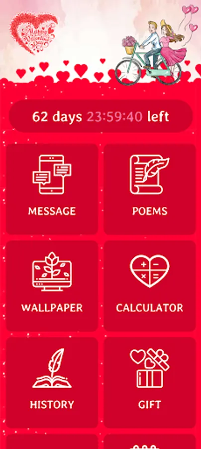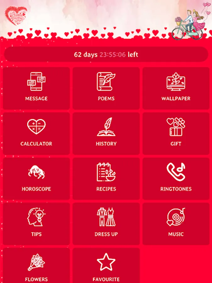 Valentine's Day - All in One app , here you can learn romantic SMS, Tips, Poet and get some special wallpaper and romantic music. you can check horoscope. please test our features.