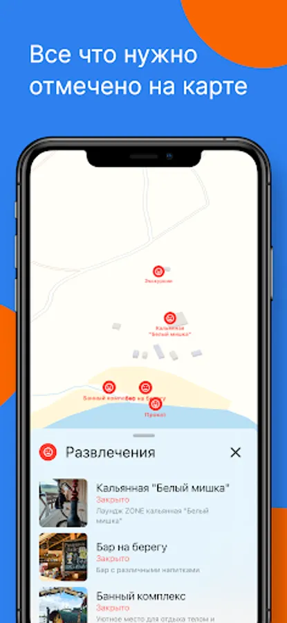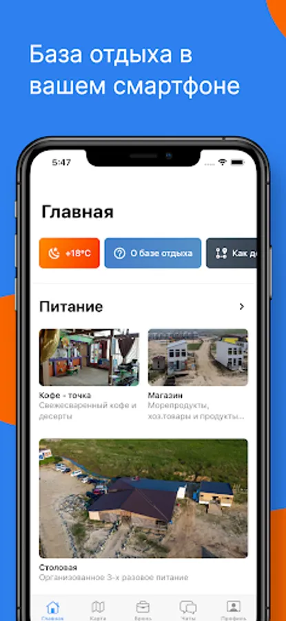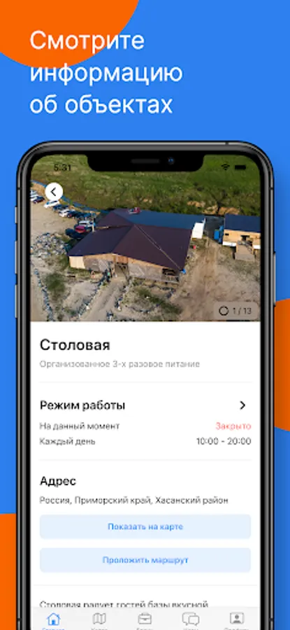 What could be more beautiful than delicious food every day when you are just relaxing? And so that you do not have to search for an ideal place for any meal on your own, in the application of the recreation center “27 region - Zarubino” there is a special map on which they are all visible at once. Detailed information opens in the card of the institution, including you can get directions to the selected place.