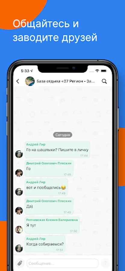 You can not only learn all the most important and remarkable things, but also discuss, share your experience and ask for advice in the general chat of the application of the recreation center “27 region - Zarubino”. You can write here non-stop and be interested in everything that happens on the territory of the base. And of course, this way there are more opportunities to find like-minded people and increase the number of people in the company, make new acquaintances.
