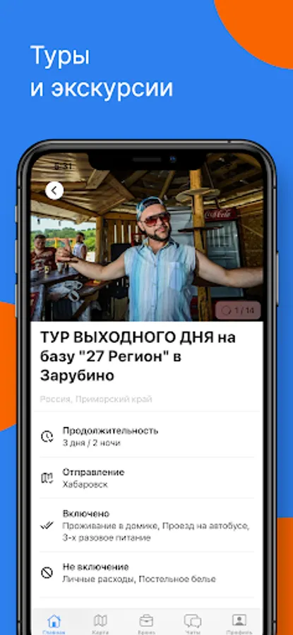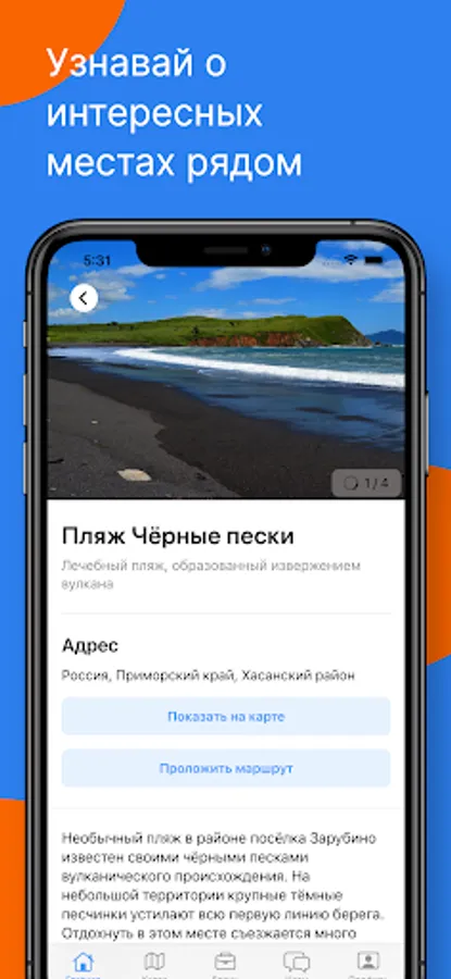 You can also come up with interesting new vacation options or learn about exciting offers in the application. For this there are sections "Blog" and "Similar tours". Looking through them at any free moment, you can learn a lot of unusual and interesting things about the coolest places for recreation in Primorye and all of Russia, plan your next vacation and enrich yourself with new knowledge.