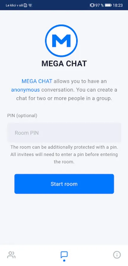 MEGA CHAT is the fastest messaging app on the market, connecting people via a unique, P2P network around the globe. Chats are end-to-end encrypted. Not even MEGA CHAT can read or listen to your communication. Send and receive high-fidelity messages and explore a growing set of new features that help you stay private. History conversation is destroyed each time you leave the room. Easy to set up, easy to use group chat. Guaranteed to keep your conversations private.
