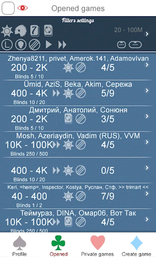 Play online with friends or random players from around the world. Play from 2 to 9 people on virtual chips, so all kinds of game modes are not gambling and entertainment only. The game requires a permanent internet connection.