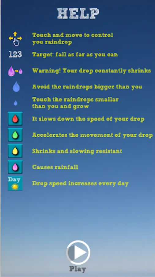 Touch and move to control you raindrop.