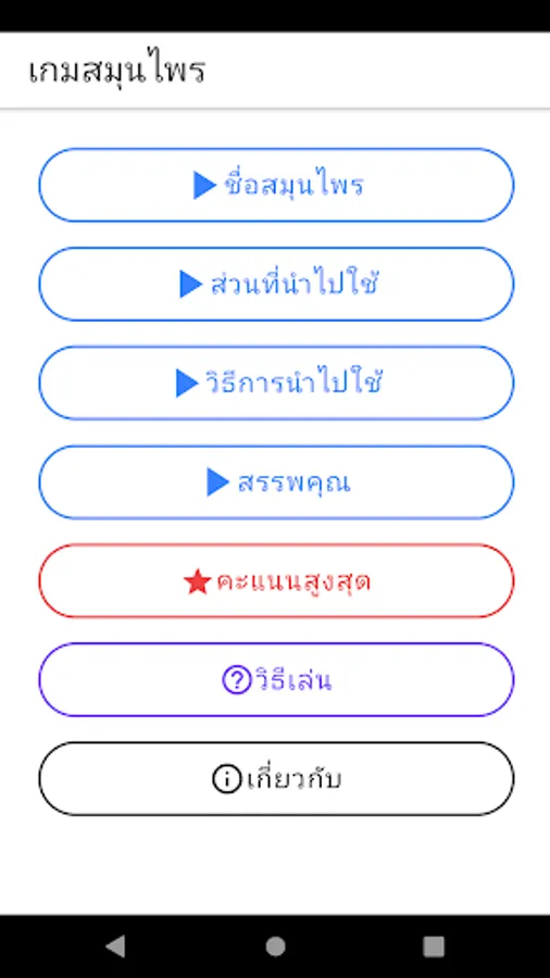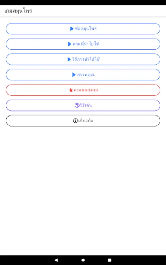 In this game, the game consists of 67 medicinal plants in primary health care, which are related to Scientific names, family names, illustrations in each part of the herb, including roots, leaves, flowers, fruit, parts used for flavoring, properties and methods of use. And precautions of each herb