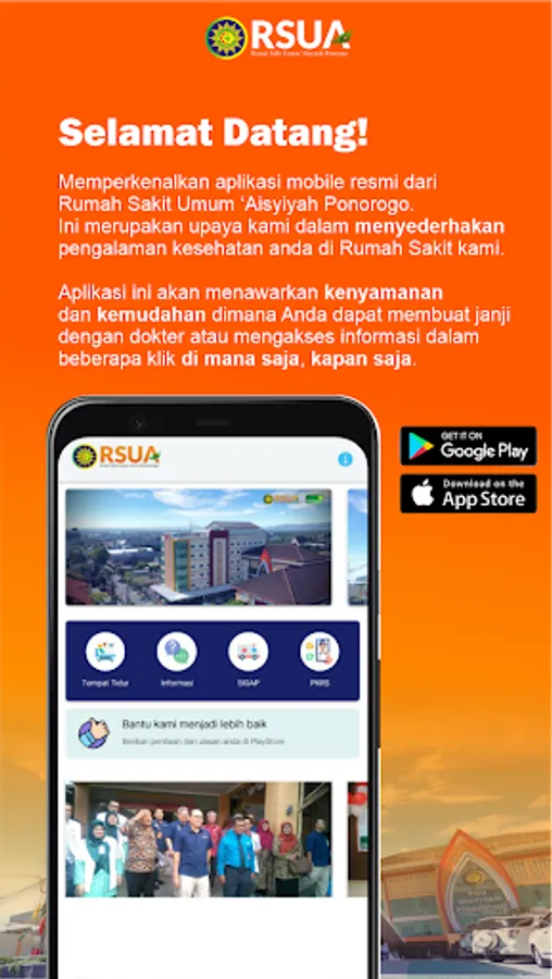 Saat ini aplikasi ini masih dalam tahap pengembangan, saran dan masukan anda sangatlah kami butuhkan untuk pengembangan aplikasi ini agar kedepannya aplikasi ini lebih baik dan bermanfaat untuk seluruh pasien RSU 'Aisyiyah Ponorogo.