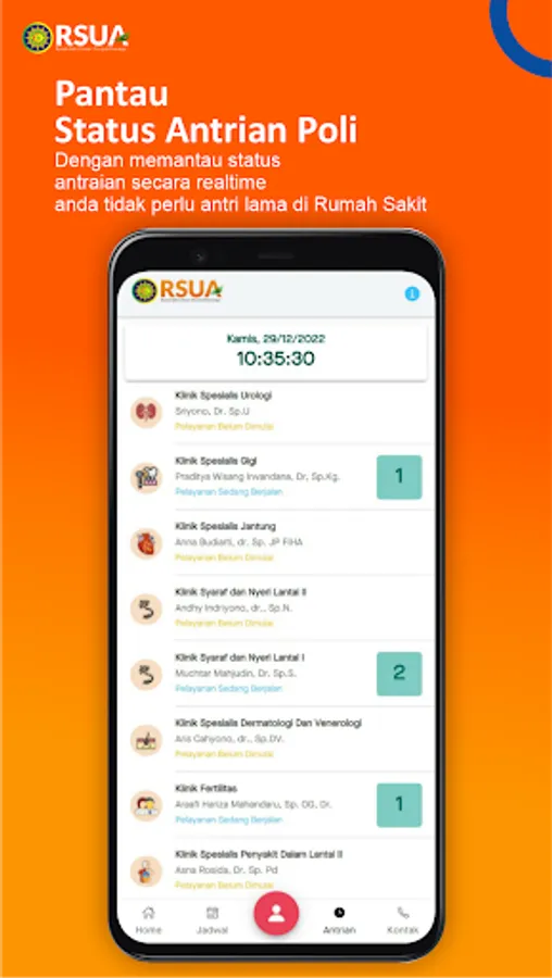 Dengan aplikasi ini anda dapat memantau antrian klinik secara realtime, jadi anda tidak perlu menunggu terlalu lama di rumah sakit dan tidak perlu takut terlambat datang ke klinik pemeriksaan karena aplikasi ini akan memberikan anda informasi sampai nomor antrian berapa yang sudah dilayani
