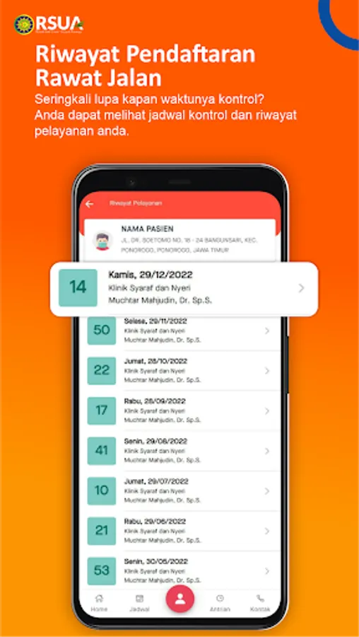 Aplikasi ini memberikan kemudahan bagi pasien RSU 'Aisyiyah Ponorogo untuk mendaftar rawat jalan. Tidak perlu repot-repot datang ke rumah sakit dan mendaftar, cukup dengan membuka aplikasi ini dimanapun anda berada dan anda bisa mendaftar untuk berobat di klinik yang anda inginkan mulai dari H-7 jadwal pemeriksaan.