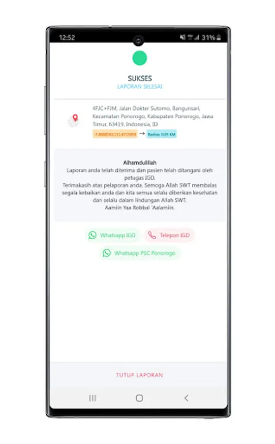 SIGAP is a medical emergency reporting service application at 'Aisyiyah Ponorogo Hospital. This service connects directly with the emergency ambulance team of 'Aisyiyah Hospital.