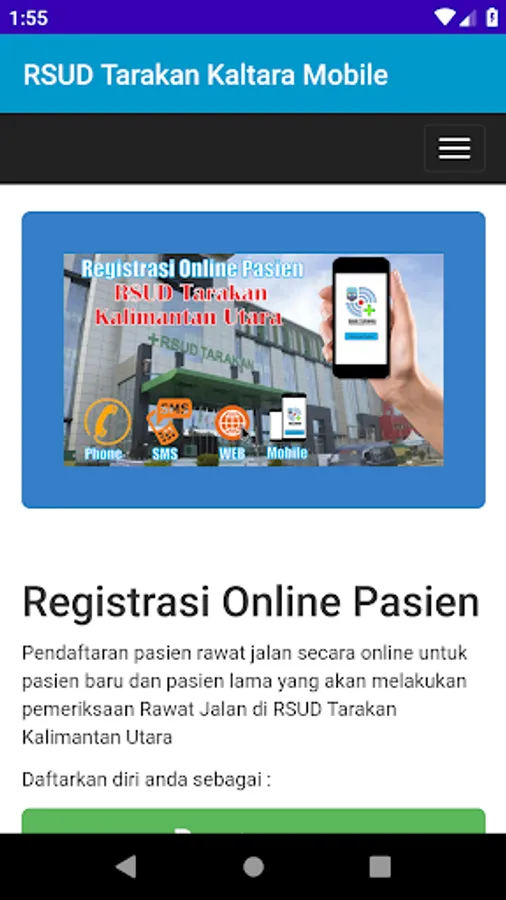 Application to Facilitate the Registration of Outpatients at Tarakan Hospital, North Kalimantan by Mobile