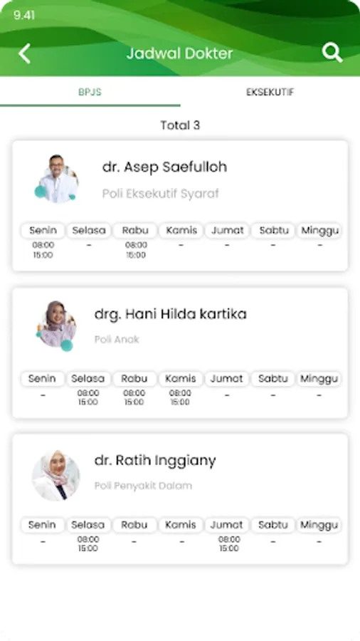 1. Doctor's Schedule, displaying doctor's practice schedule information