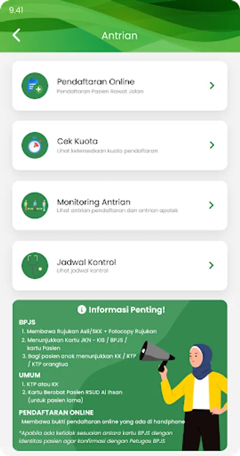 For users of RSUD AL IHSAN Mobile, they can enjoy the following services: