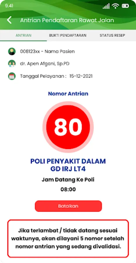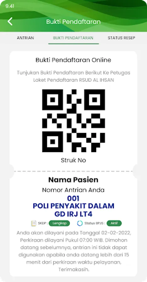 6. Check Patient Card, displays patient digital card information and patient bpjs card