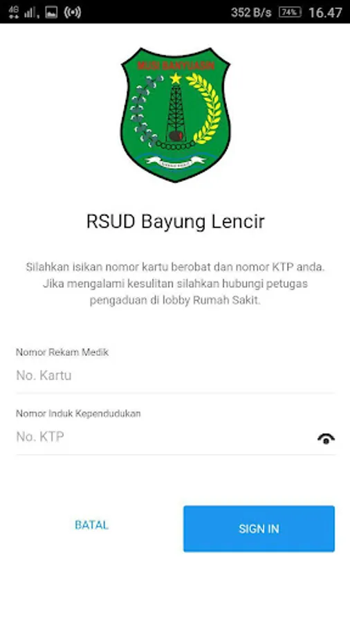 The use of this temporary application only applies to Patients who have No RM in Bayung Lencir Hospital.