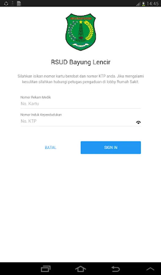 APAM Bayung Lencir Hospital is the Application of Patients and Complaints of the Bayung Lencir Community. Application intended for patients who want to register online at the Bayung Lencir Regional General Hospital (hereinafter referred to as Bayung Lencir Regional Hospital). In addition there is a complaint feature if there are complaints and dissatisfaction with the services at Bayung Lencir Hospital.