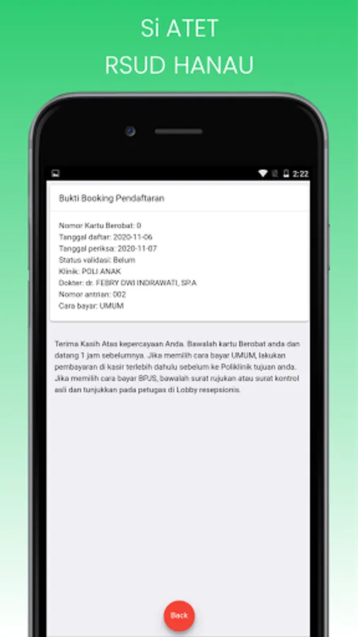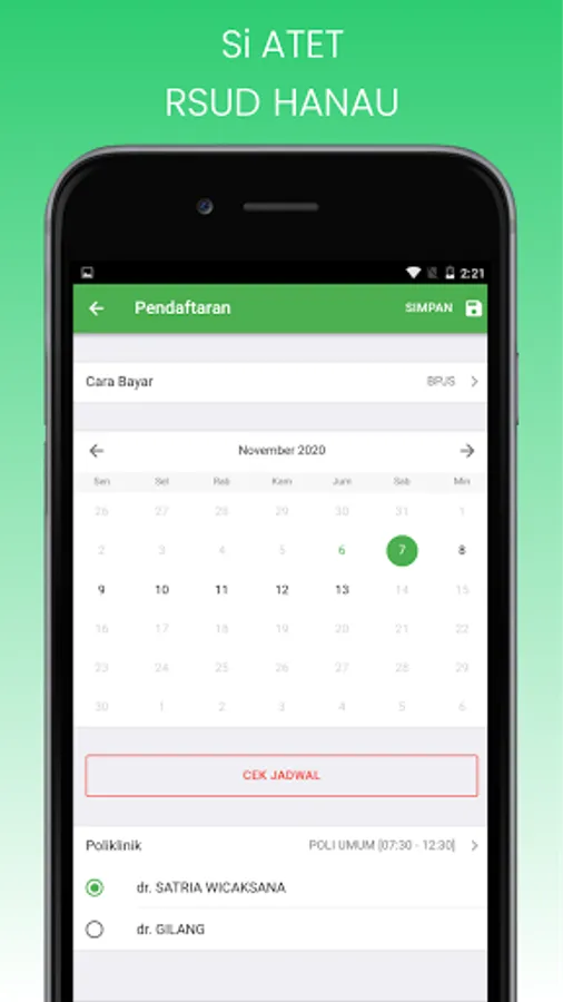 Online registration can be done with Schedule D + 2 to D + 7 from the day of registration by entering the Medical Card Number, KTP Number (NIK), Payment Method, Choice of days and doctors for regular poly. The appointed doctor is a DPJP doctor (Doctor in Charge of Services).