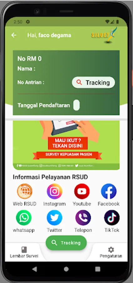 This Application Can View Inpatient Patient Tracking Information functions to make it easier for patients to know the flow of services at Leuwiliang Hospital. rsudl silhouette
