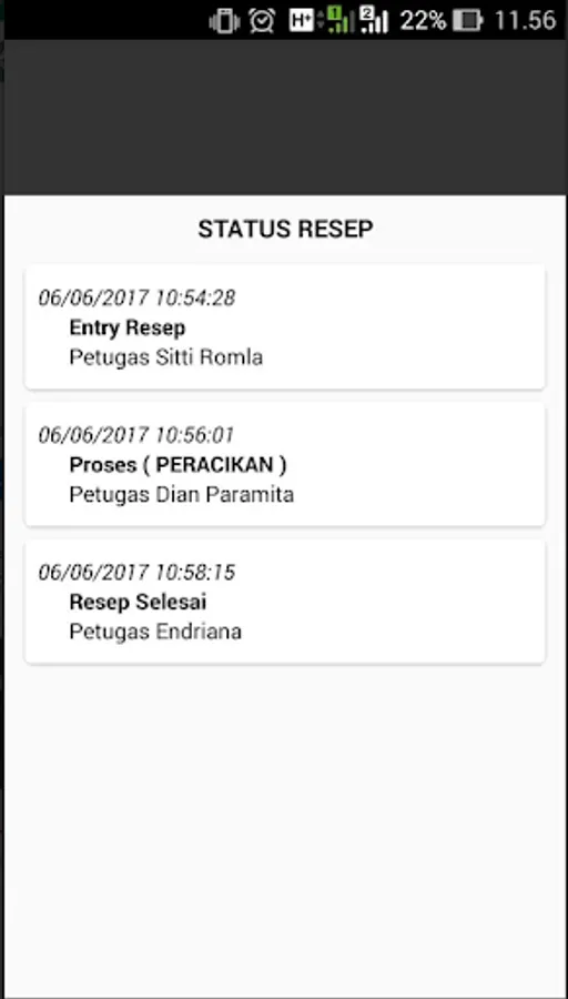 ResepKU is an android program that functions to find out the recipe status of the prescription at entry, prepared by the officer until the recipe is complete and ready to be taken by the patient.