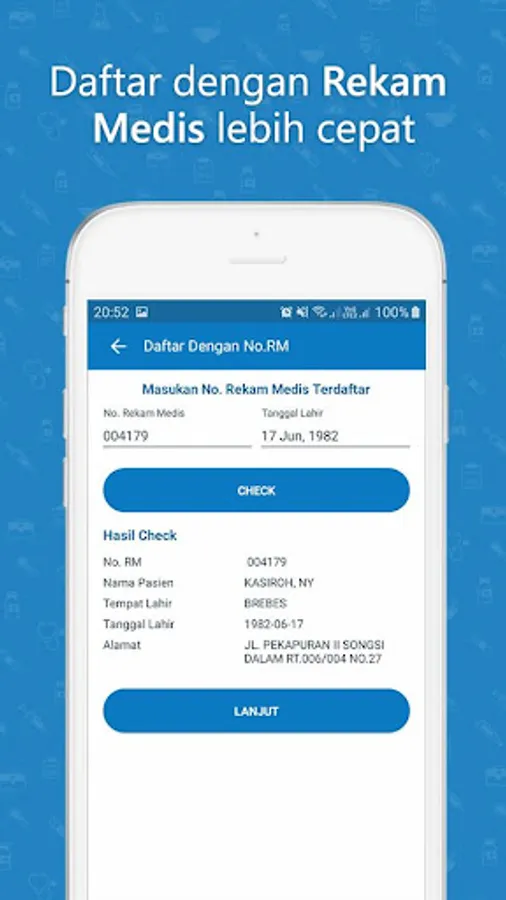 Patient Registration Application to facilitate the registration process and minimize the queue, so that the registration process becomes easy and fast. The application is supported by patient data cloud technology by implementing a webservice and QRcode and the patient performs independent chekin at RSUD Tamansari.
