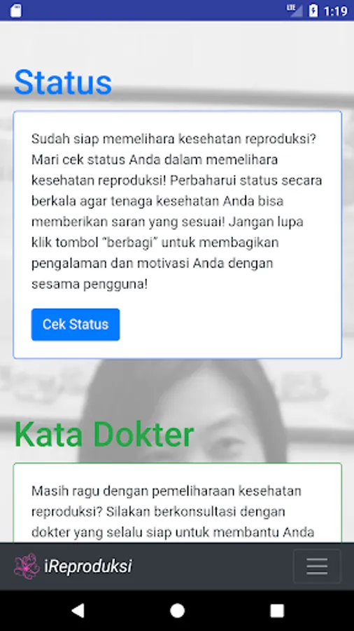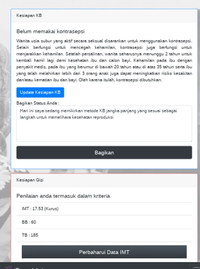 This application aims to increase the number of postpartum mothers who are ready to maintain reproductive health. Through the identification and stratification of problems, the low number of postpartum mothers who are ready to maintain reproductive health is a major problem in maternity care. Some of the dominant causes are wrong family traditions, lack of knowledge of officers, lack of patient knowledge, postpartum health education is not integrated with long-term reproductive health, boring counseling, and too much content in ABPK.