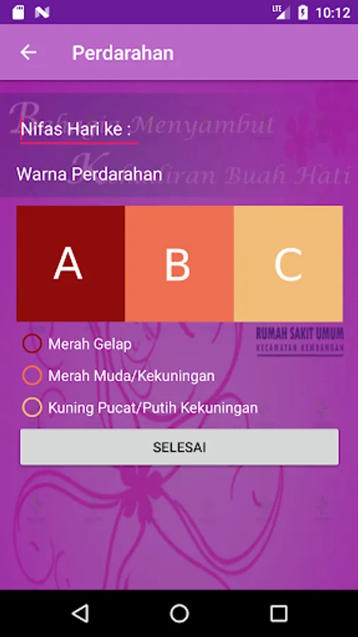 This application was made in order to help people, especially postpartum mother postpartum phase know well. Creators are Maternity Hospital Outpatient Team Kembangan, assisted by advisors from the Specialist Gynecology (Obgyn) and Child Specialist Hospital Kembangan