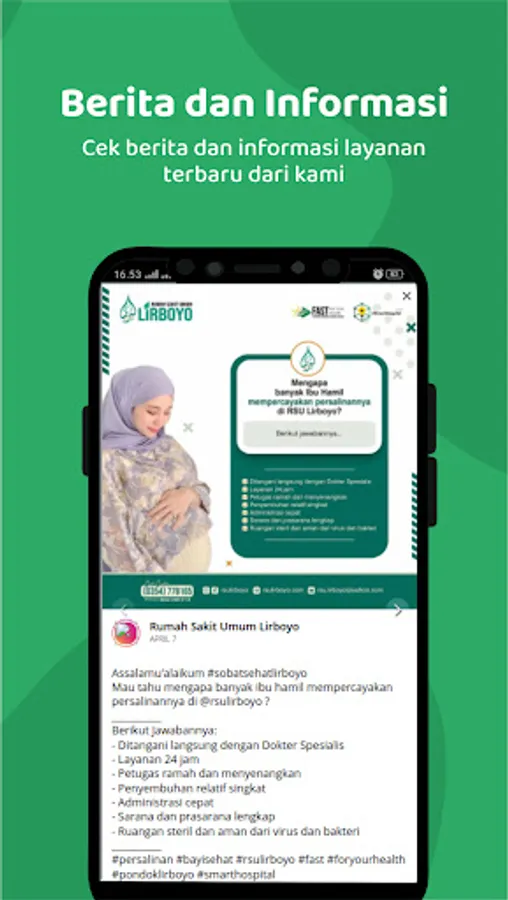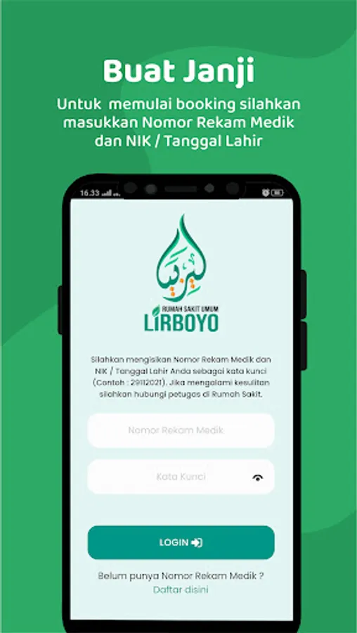 This application is intended for patients who want to register online at RSU Lirboyo. The use of the Lirboyo RSU APAM application can be used for patients who already have a medical record number or who have been checked at Lirboyo RSU. Online registration can be done within the next 14 days.