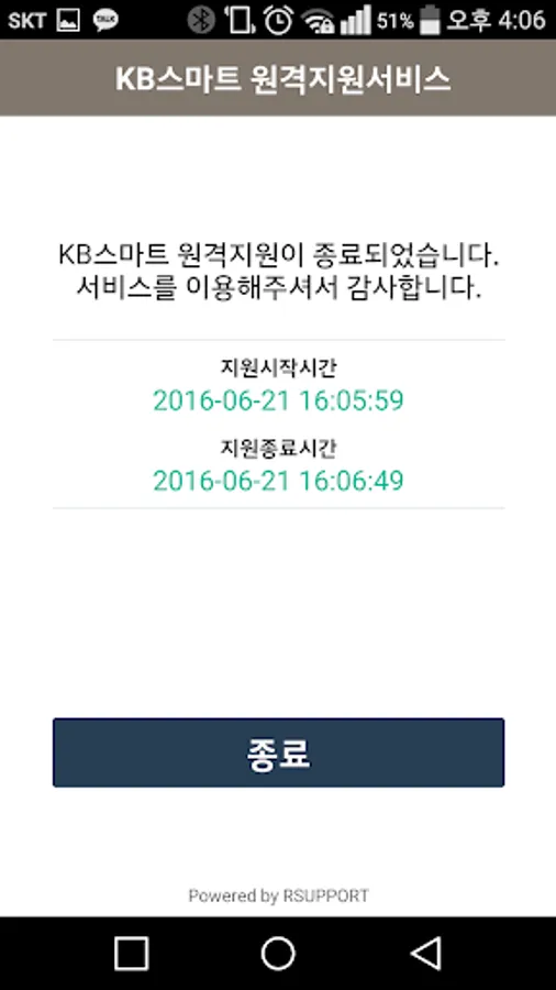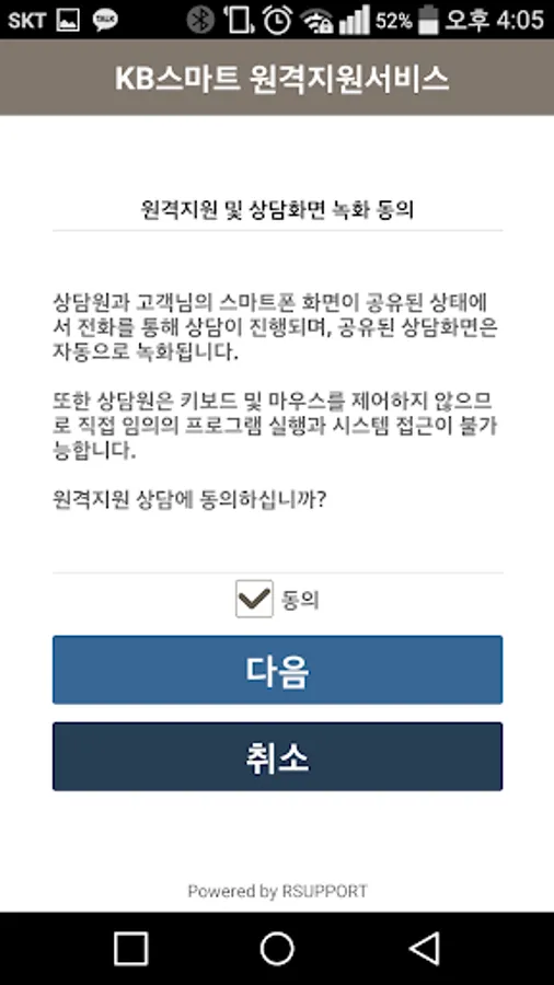 KB Smart Remote Assistance is a remote support tool that can diagnose and solve problems by sharing the terminal screen of the mobile device based on Android OS by professional counselors online and remotely.