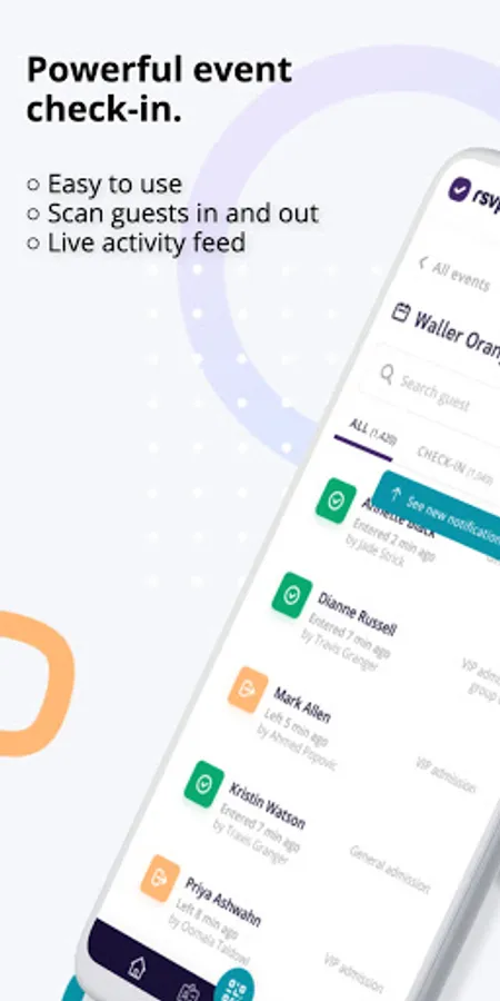 A powerful, easy-to-use event check-in system. Scan guests in and out with QR code. View live activity feed.