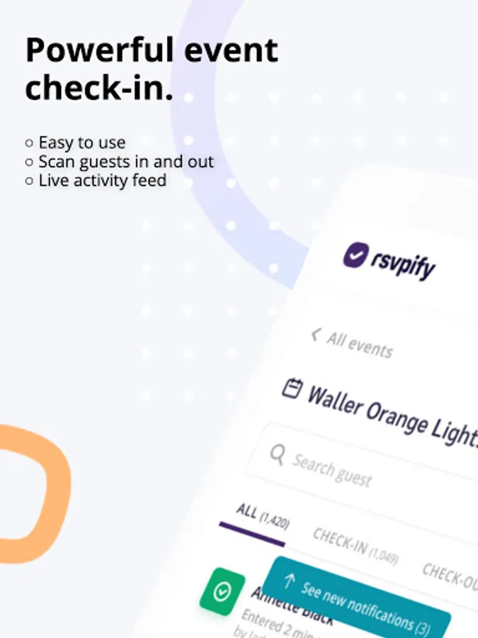 RSVPify's check-in suite is fully-integrated with our event management software, and can also be used with any existing guest list.