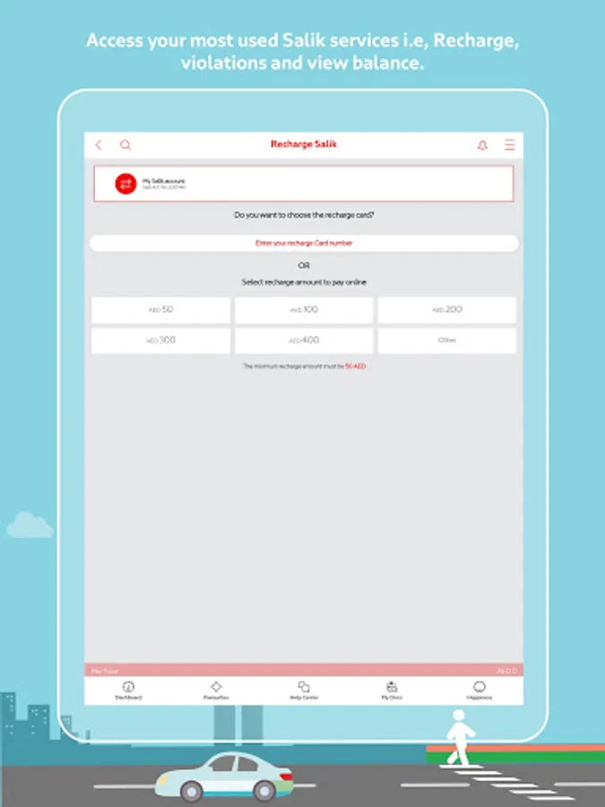 • View recent transactional activity such as any Parking tickets and Salik recharges