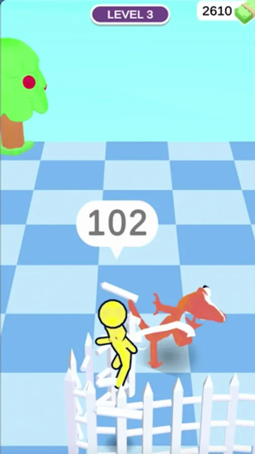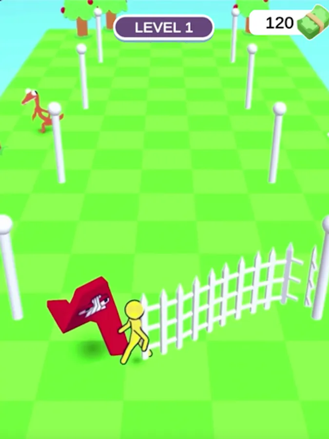 Pick up the fence pieces level by level, and then try to collect the monsters!