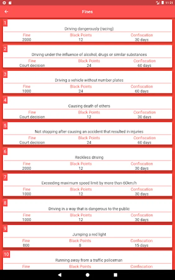 The main purpose of this application is to help you with the signal test. You cannot use it as evidence or for legal purposes. For better understanding, read the UAE official driver's manual.