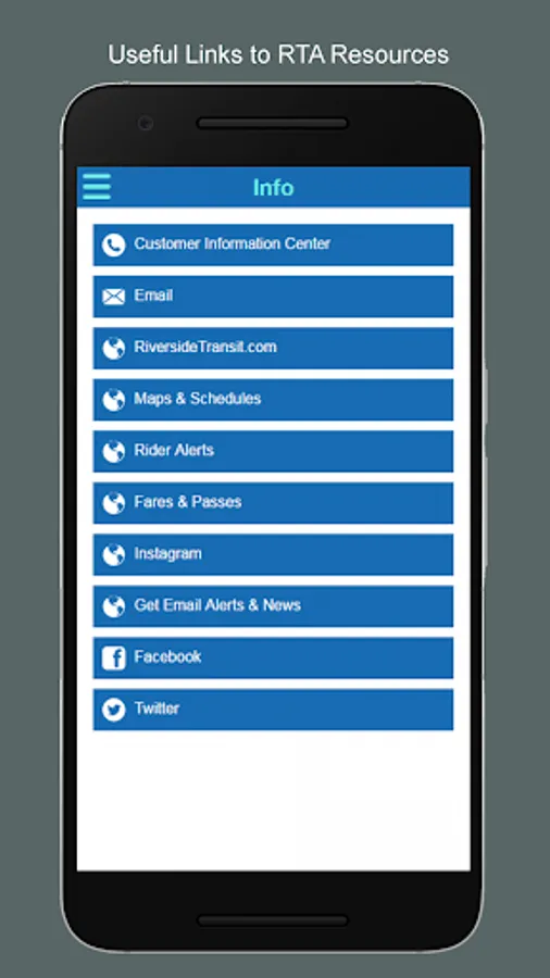 Never miss your bus again. Use the Riverside Transit BusWatch app and boom: quick and easy access to real-time arrival times for your favorite Riverside Transit Agency (RTA) bus routes. Plan your trip, set reminders, see bus schedules and get notified about delays. The free application uses data provided by the RTA bus tracking systems over to your mobile device’s Wi-Fi or cellular network connection.