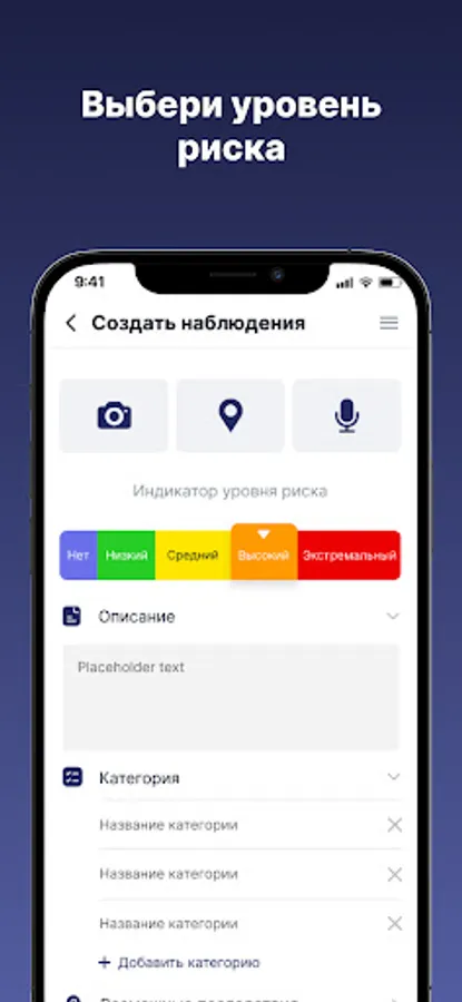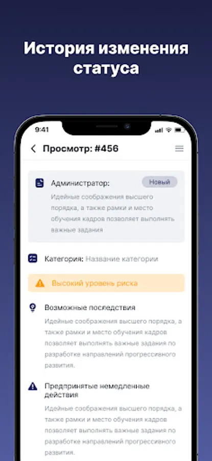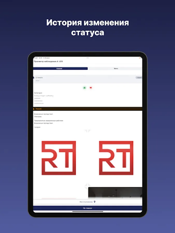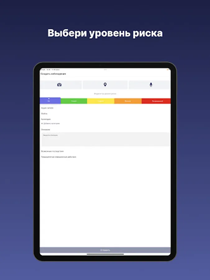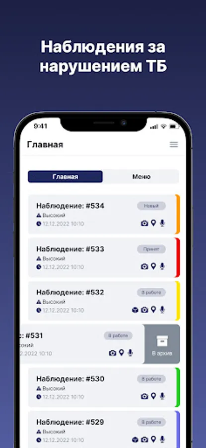 The mobile application allows you to register emergency situations and any incidents, potentially dangerous conditions and actions, thereby preventing accidents related to worker injuries and property damage. In addition, using the application, it is possible to conduct and record occupational safety inspections at the facilities.