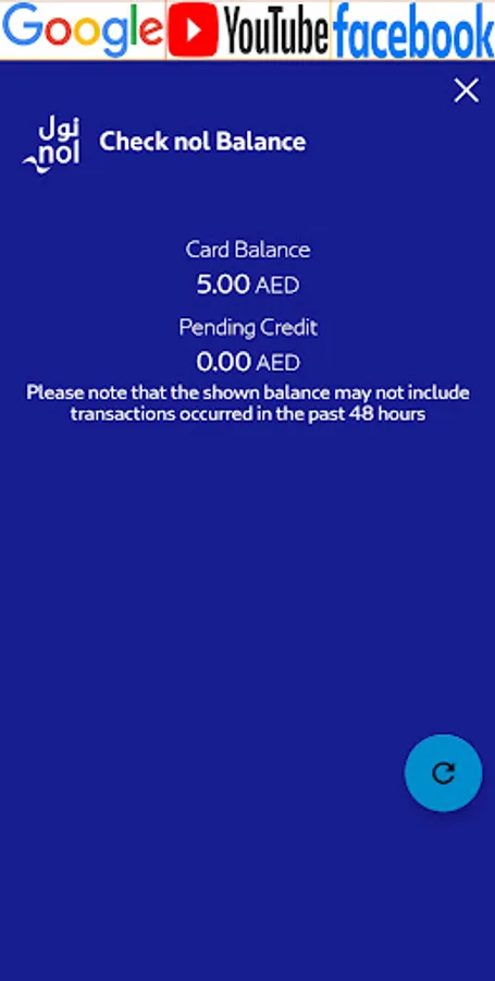1. Click on the Check NOL Balance box (button) on the Nol App