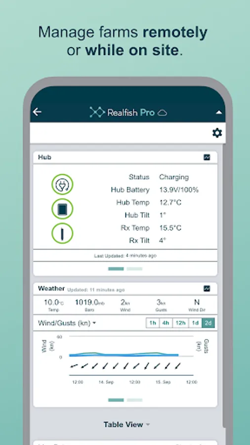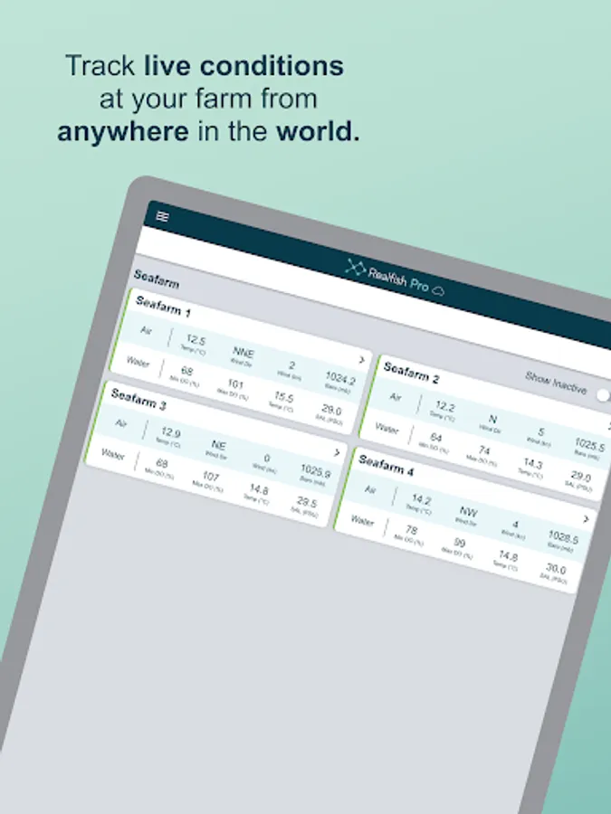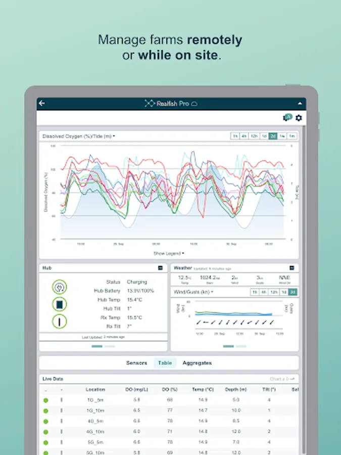 Realfish Pro gives you the power to monitor, manage and control key aspects of your fish farm no matter where you are.