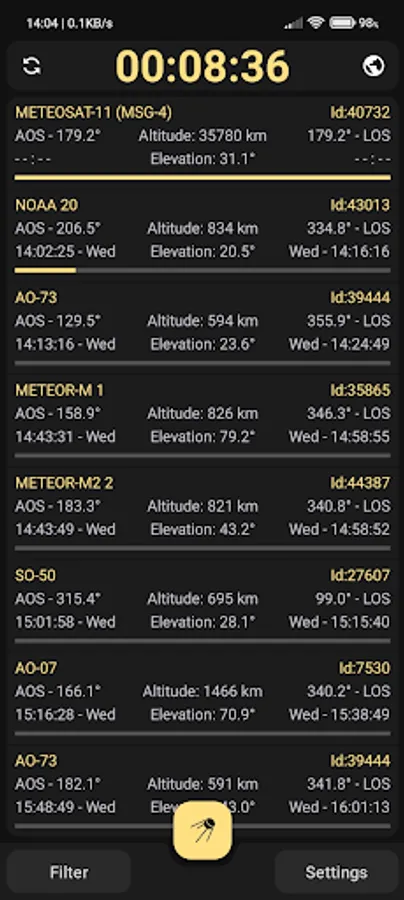 Satellite positions and passes are calculated relative to your location. To get reliable info make sure to set the observation position using GPS or QTH Locator in the Settings menu.