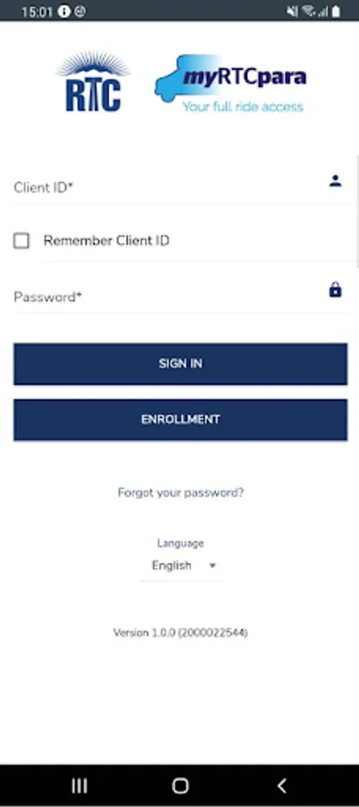 First-time users will need to enroll in the system to begin using the app. To enroll you will need to provide your RTC Paratransit ID #, date of birth, and email address (only one client can have the same email address on file). Once you submit, you will need to activate by clicking the link in the email from myRTCpara@rtcsnv.com sent to the email address provided.