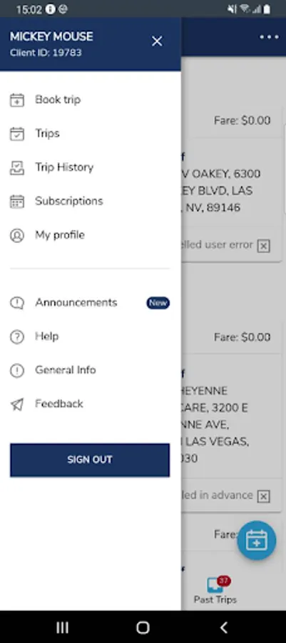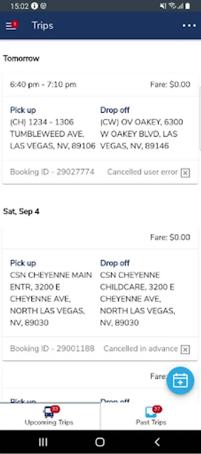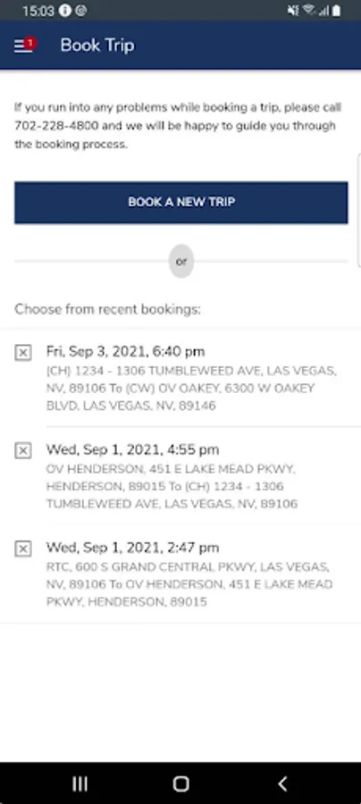Subscriptions- This will display any recurring trips that have been placed without having to schedule each time. For information on subscriptions, please contact RTC Customer Care at 702-228-4800.