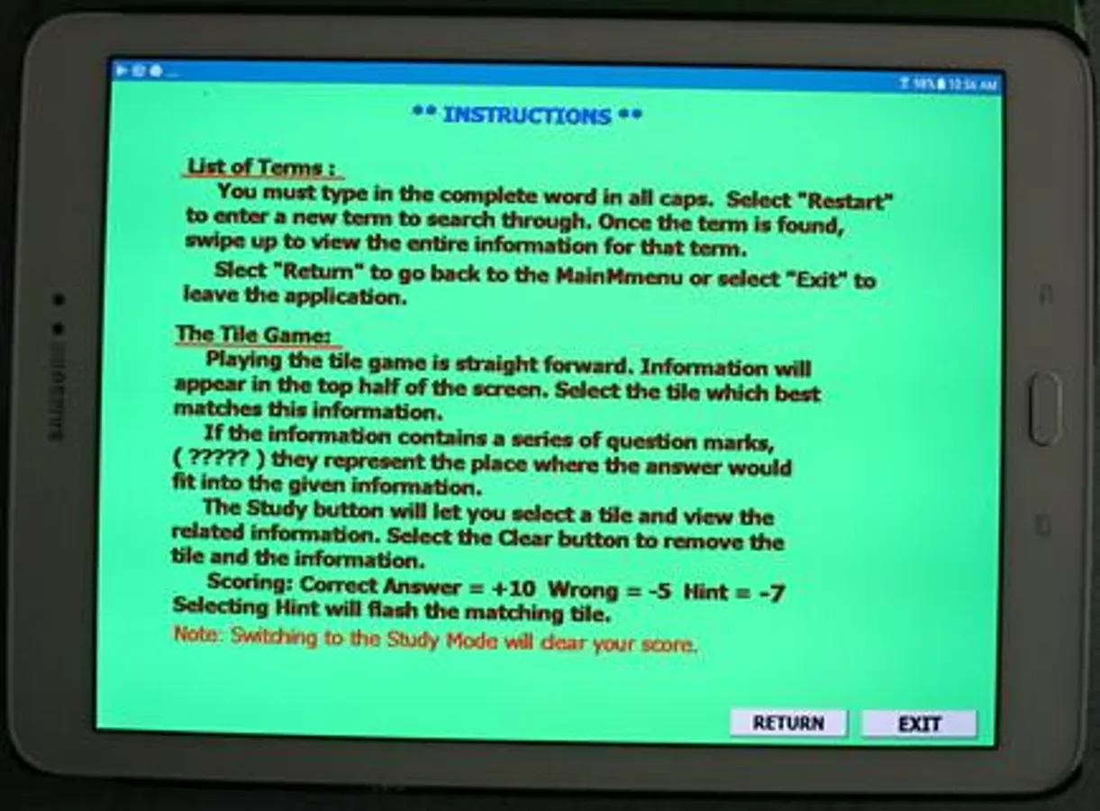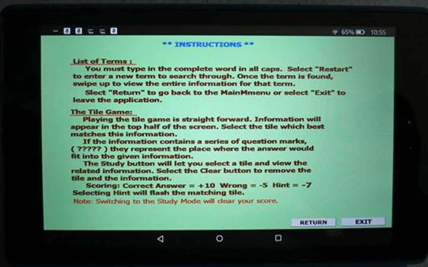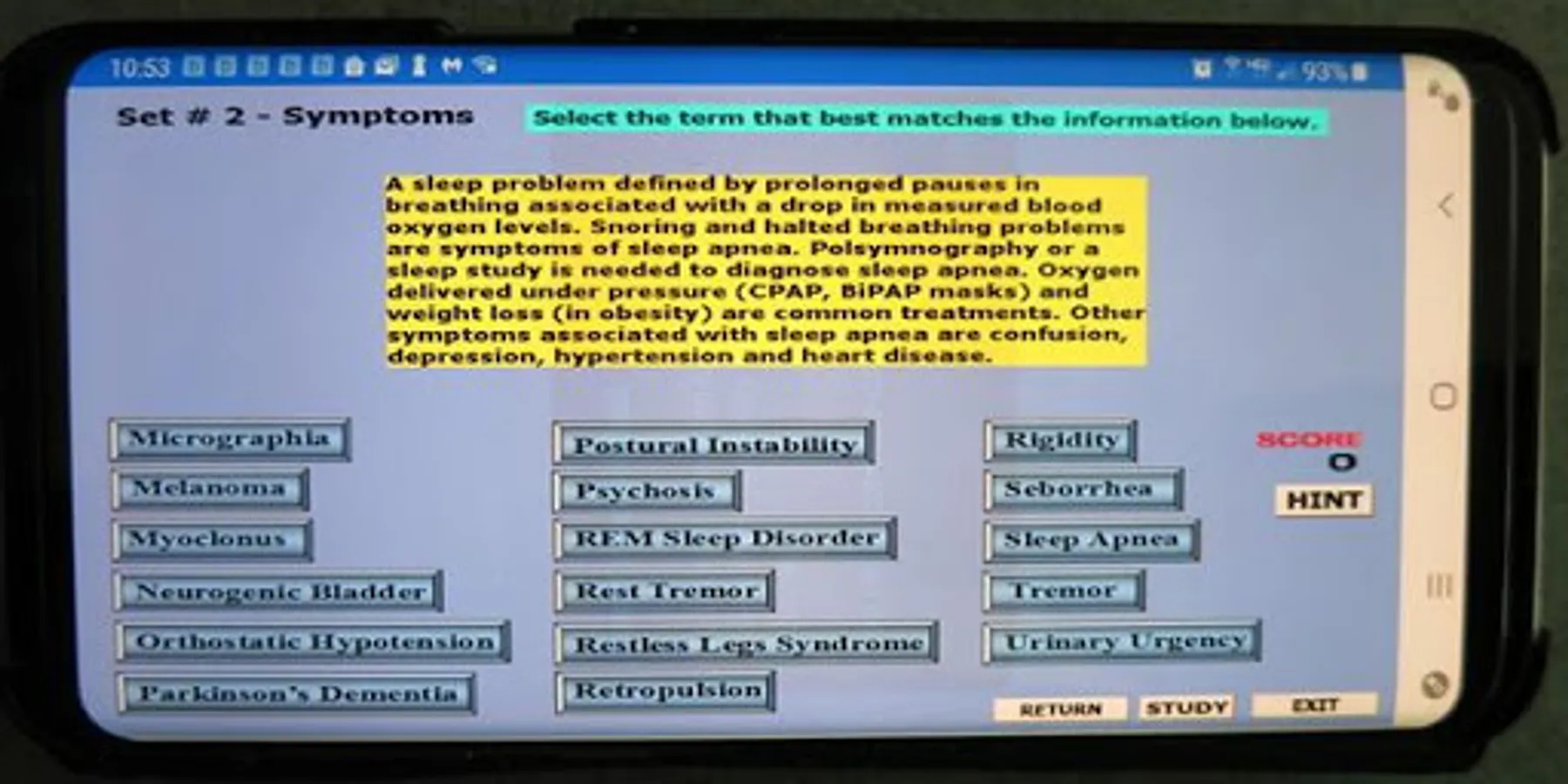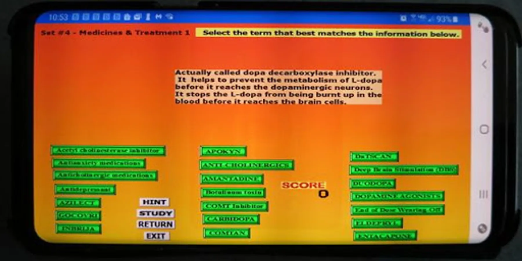 This is a FREE Android app which covers over 90 terms associated with Parkinson's Disease. Covers terms related to symptoms, treatments, medicines, and brain structure and function. The app contains a searchable glossary which includes the terms and their definitions. There is a tile game divided up into five screen which let's you practice recalling the information.