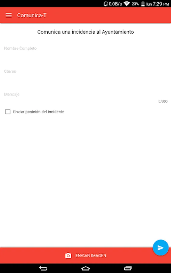 - Communicate to the municipality incidents through a form from which you can send photos, location or text only.